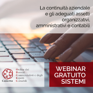 Webinar “La continuità aziendale e gli adeguati assetti organizzativi, amministrativi e contabili” con l’ODCEC di Caserta