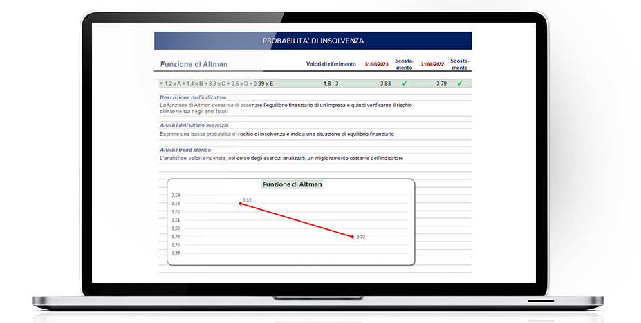 • determini il check-up finale con indicazione della probabilità d’insolvenza, calcolata sulla base della funzione di Altman.