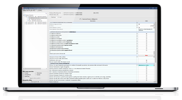 Hai a disposizione una soluzione completa per gestire tutte le pratiche del cliente: Comunicazione Unica, deposito bilancio, comunicazione PEC, dichiarazione imposta bollo virtuale, Rendicontazione paese per paese, Comunicazione rapporti finanziari, Comunicazione Vendite e-commerce (marketplace) e molte altre.